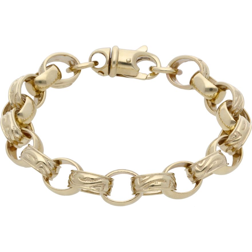 New 9ct Gold 8 Inch Oval Pattern & Polish Belcher Bracelet 28.5g