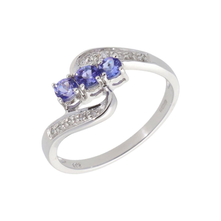 New 9ct White Gold Tanzanite & Diamond Trilogy Dress Ring