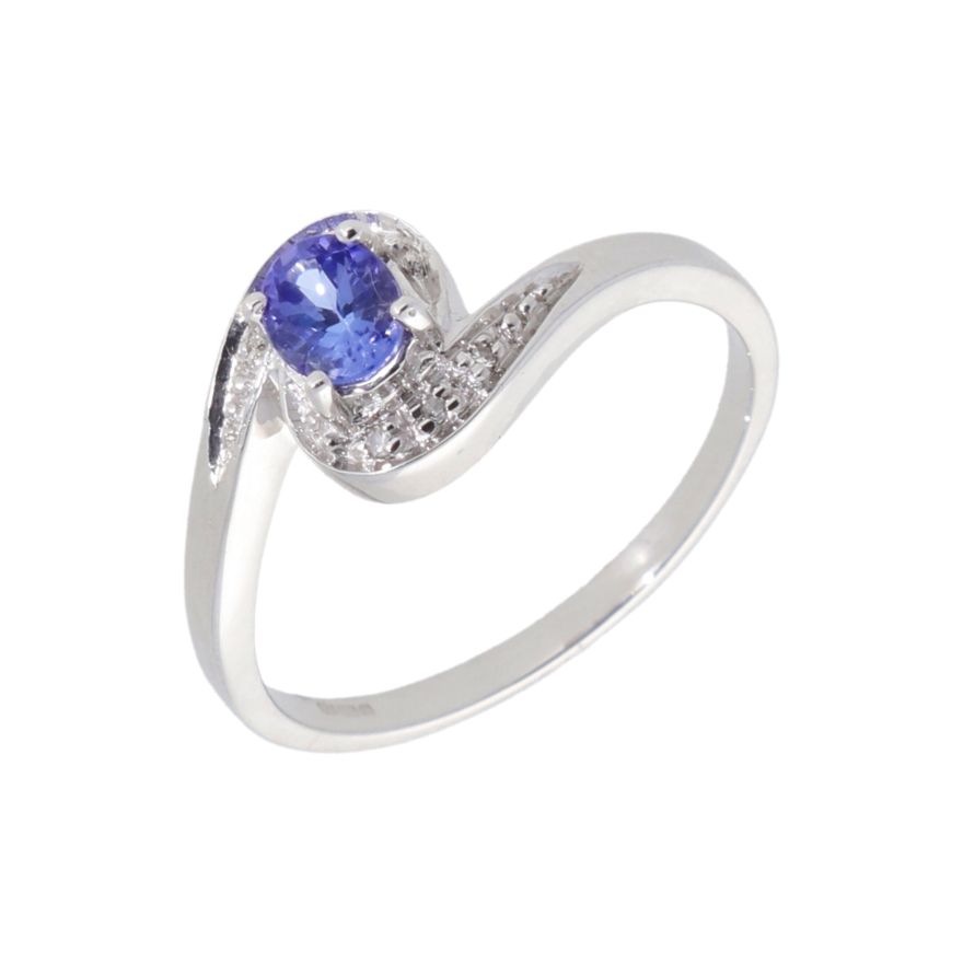 New 9ct White Gold Tanzanite & Diamond Twist Design Dress Ring