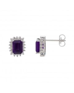New 9ct Yellow Gold Amethyst & Diamond Drop Earrings