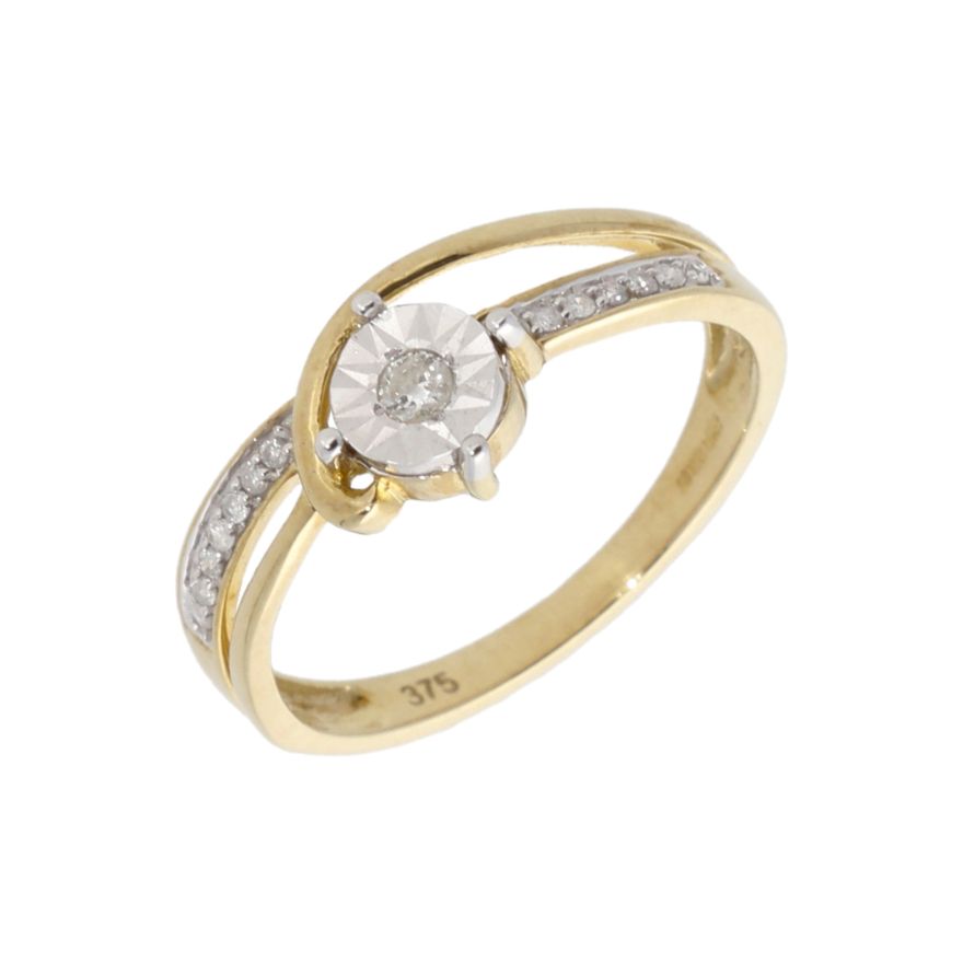 New 9ct Yellow Gold Diamond Solitaire Twist Ring