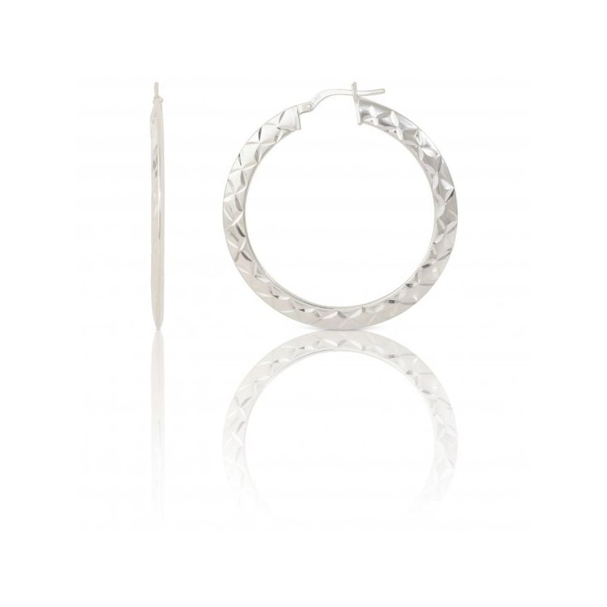 New Sterling Silver 30mm Pattern Hoop Earrings