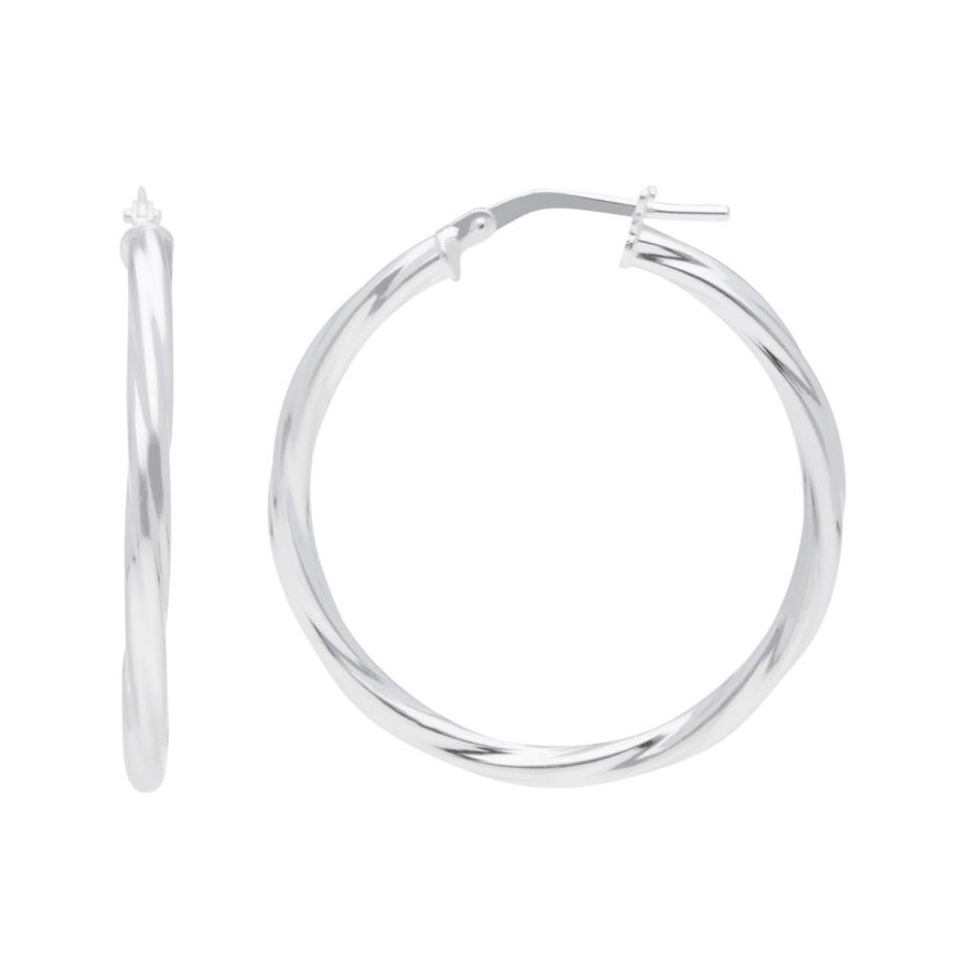 New Sterling Silver 30mm Slender Twisted Hoop Earrings