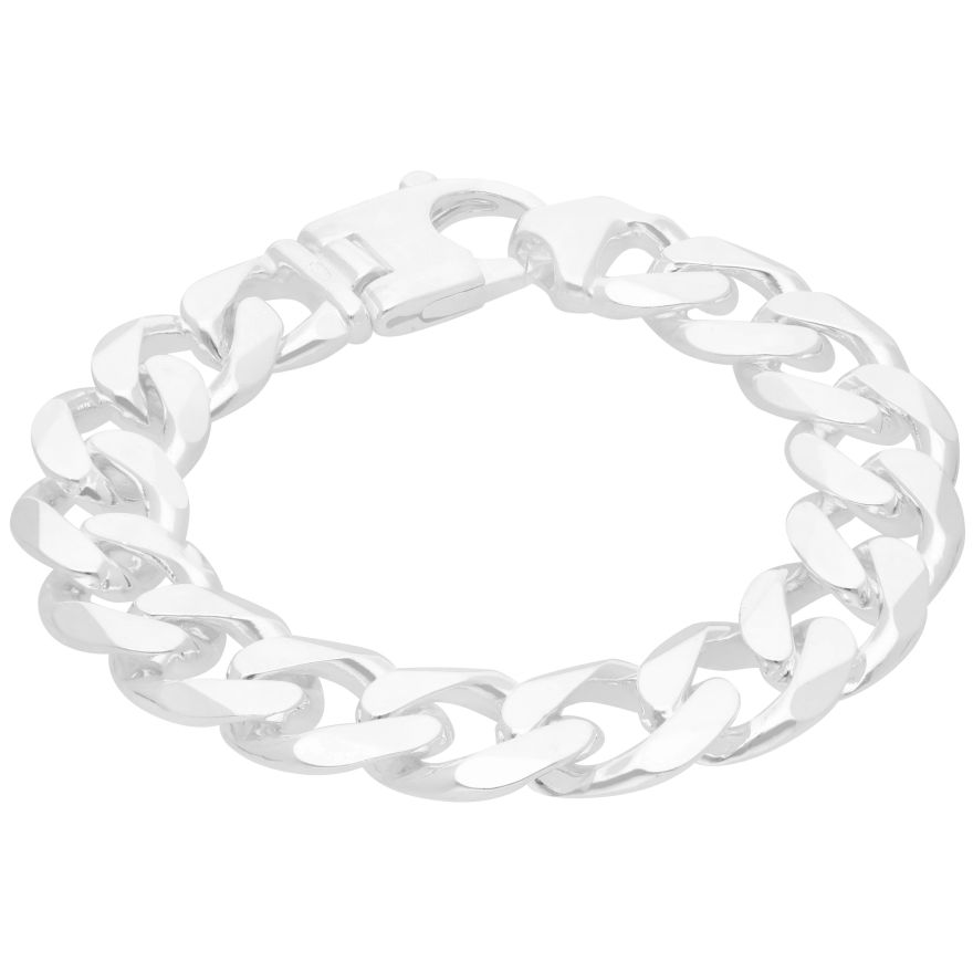 Another brilliant example of a curb bracelet by William May. This silver curb bracelet showcases a solid 216mm(8.5") x 15mm weighing 72.9grams (2.3oz) making it the perfect gift for him, or a perfect addition to your own collection. A brand new item, sold with full UK hallmarking and a 12 month manufacturer's fault warranty. Satisfaction guaranteed, If you are not happy with your item for any reason we also offer a hassle-free 30 day return policy on all items.