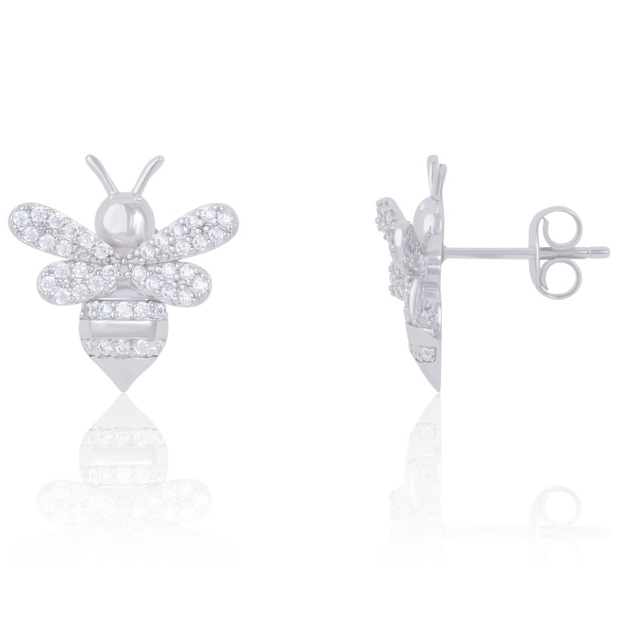 New Sterling Silver Cubic Zirconia Bee Stud Earrings