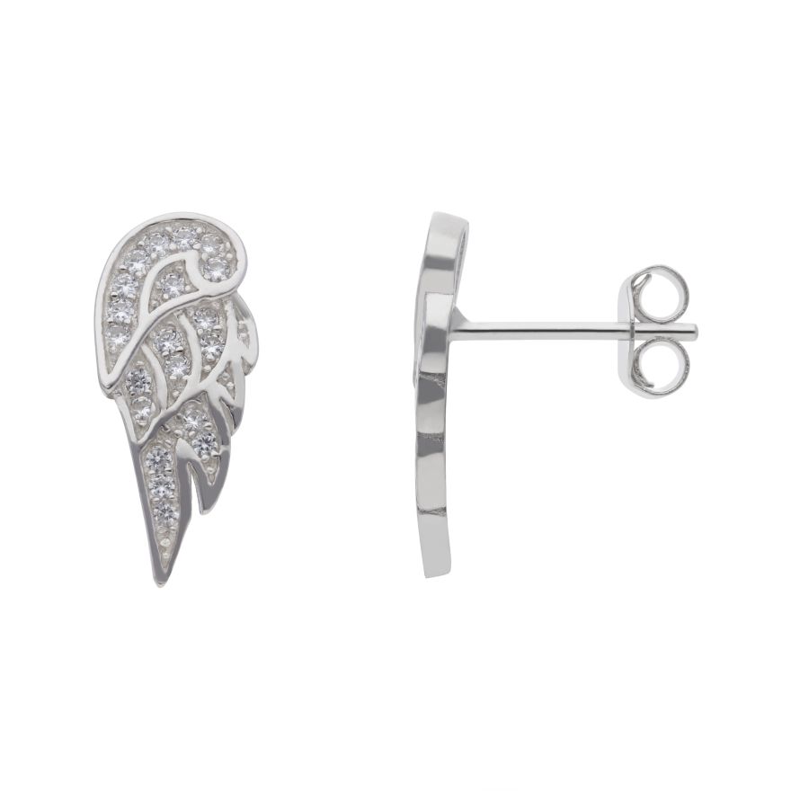 New Sterling Silver Cubic Zirconia Set Angel Wing Stud Earrings