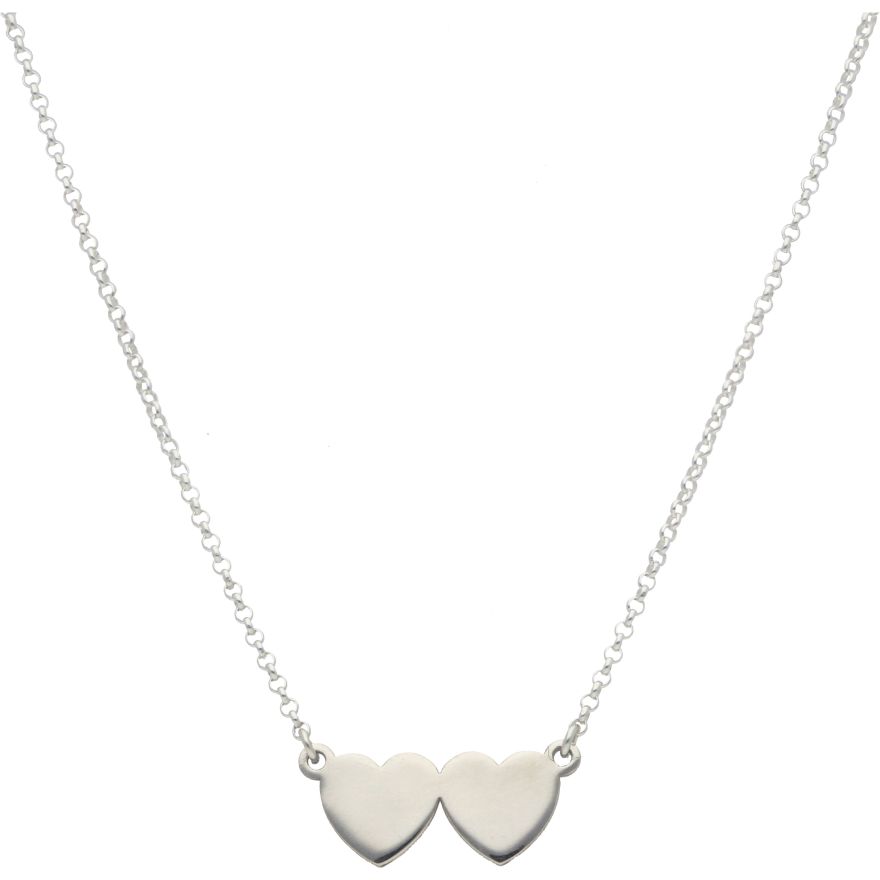 New Sterling Silver Double Heart Necklace Adjustable 19" - 20"