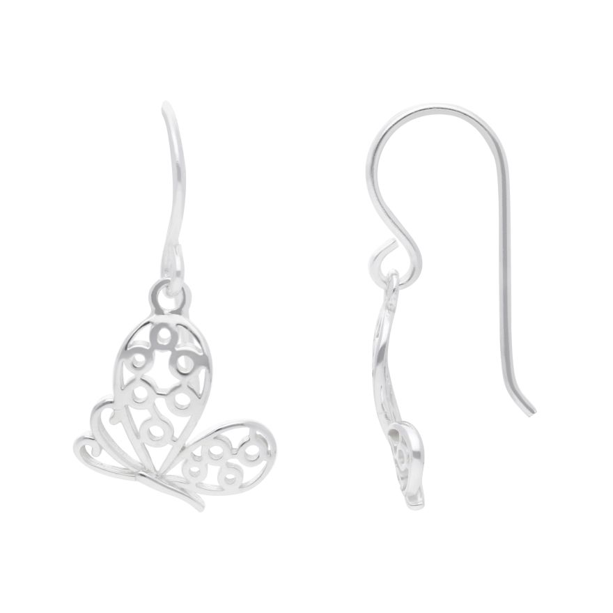 New Sterling Silver Filigree Wing Butterfly Drop Earrings