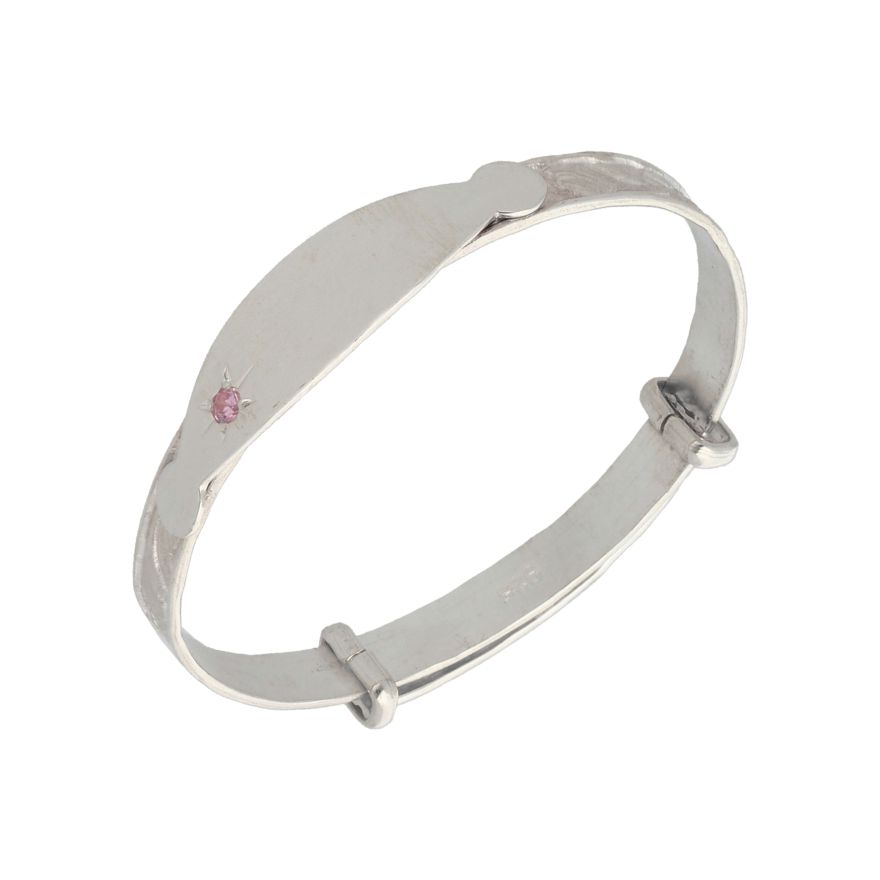 New Sterling Silver Pink Cubic Zirconia Baby Identity Bangle