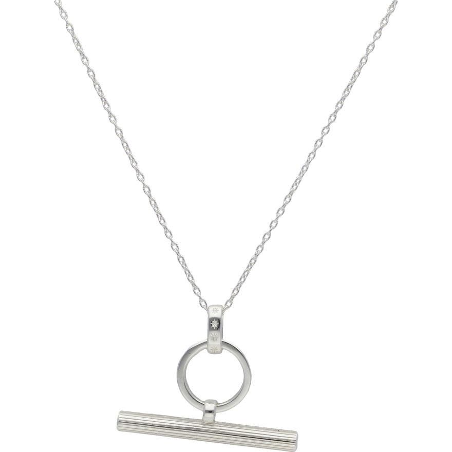New Sterling Star Detail T-Bar Pendant & 18" Chain Necklace