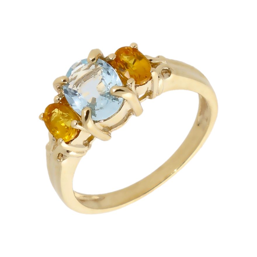 Pre-Owned 9ct Gold Orange & Blue Topaz Trilogy Dress Ring