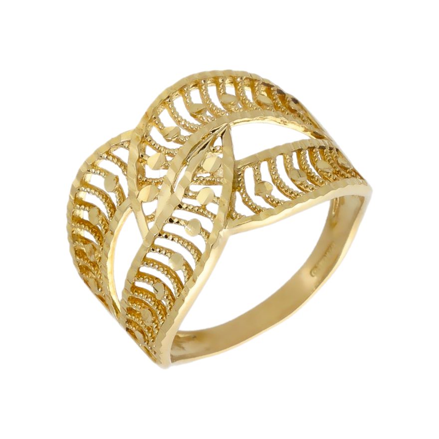 Pre-Owned 9ct Yellow Gold Cutout Crossover Wave Dress Ring